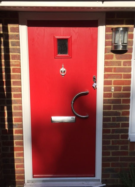 Our customers selected the Lichfield contemporary design for both the front and side doors, with D-Handle for the front door and an Inline 600mm handle for the side door. We then placed in the Fusion Venetia style windows and finished off the duo composite door with a lovely glossy red paint. The job was completed within the day resulting in a very satisfied couple and great looking doors that ensure the property goes a long way to becoming an eco-home.