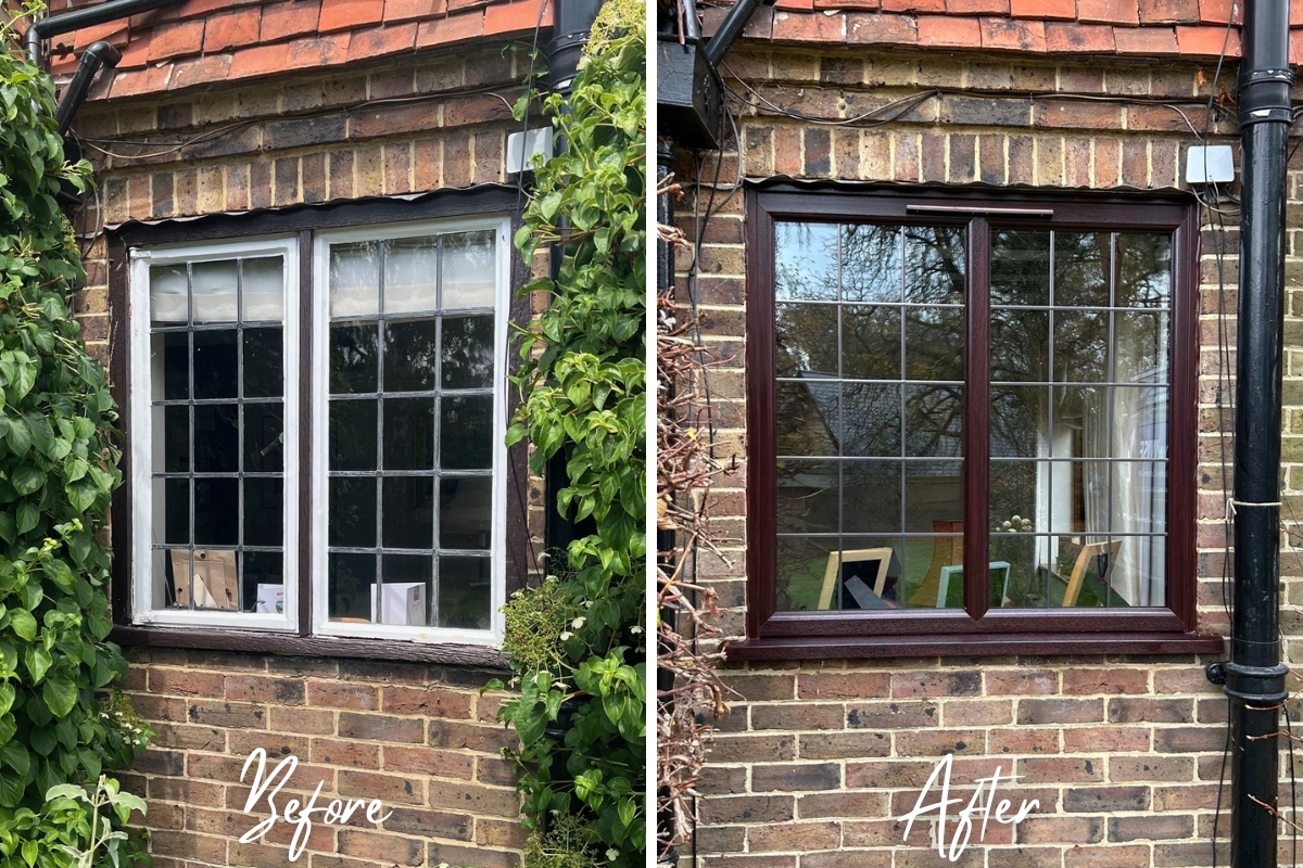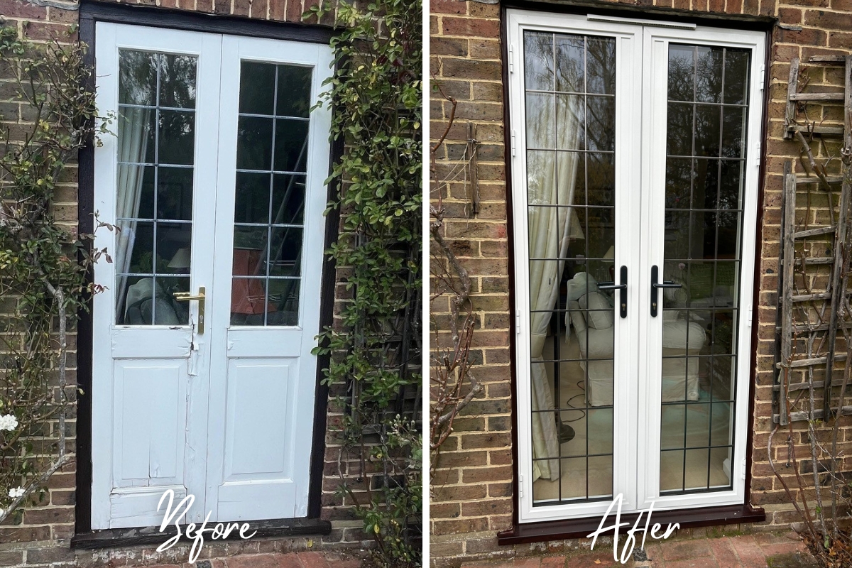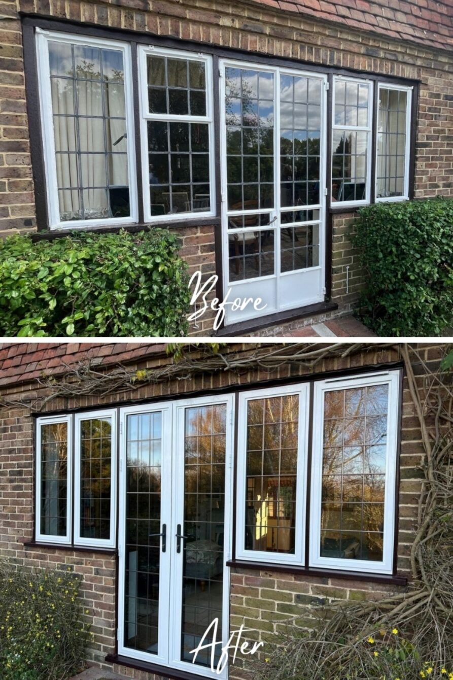 Our before and after images illustrate how the replacement windows and doors have retained the overall original aesthetic of this Cuckfield home.