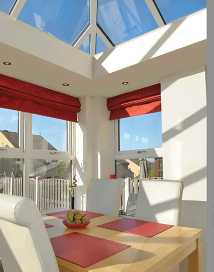 A new conservatory incorporating the LivinRoom Roof provides the best of both worlds, transforming the construction into a ‘crossover’ between a conservatory and more conventional Orangery style construction, with all the benefits of further enhanced thermal efficiency and creating new dynamic living space with the feel of a real room / living room.